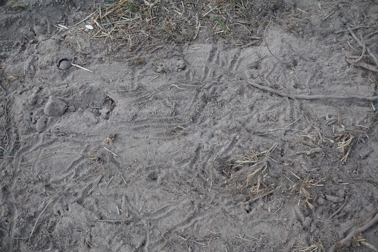 Until next time, here’s a picture of turkey tracks around the dome components. They and our human neighbors have been keeping an eye on the tarp village. They’re all waiting for it to turn into a dome, too.