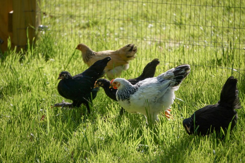 Last week, I wouldn’t have put the chicks outside on a day this cold, but with their latest extra feathers and body weight, they frolicked in the low 40s like it was no big deal.