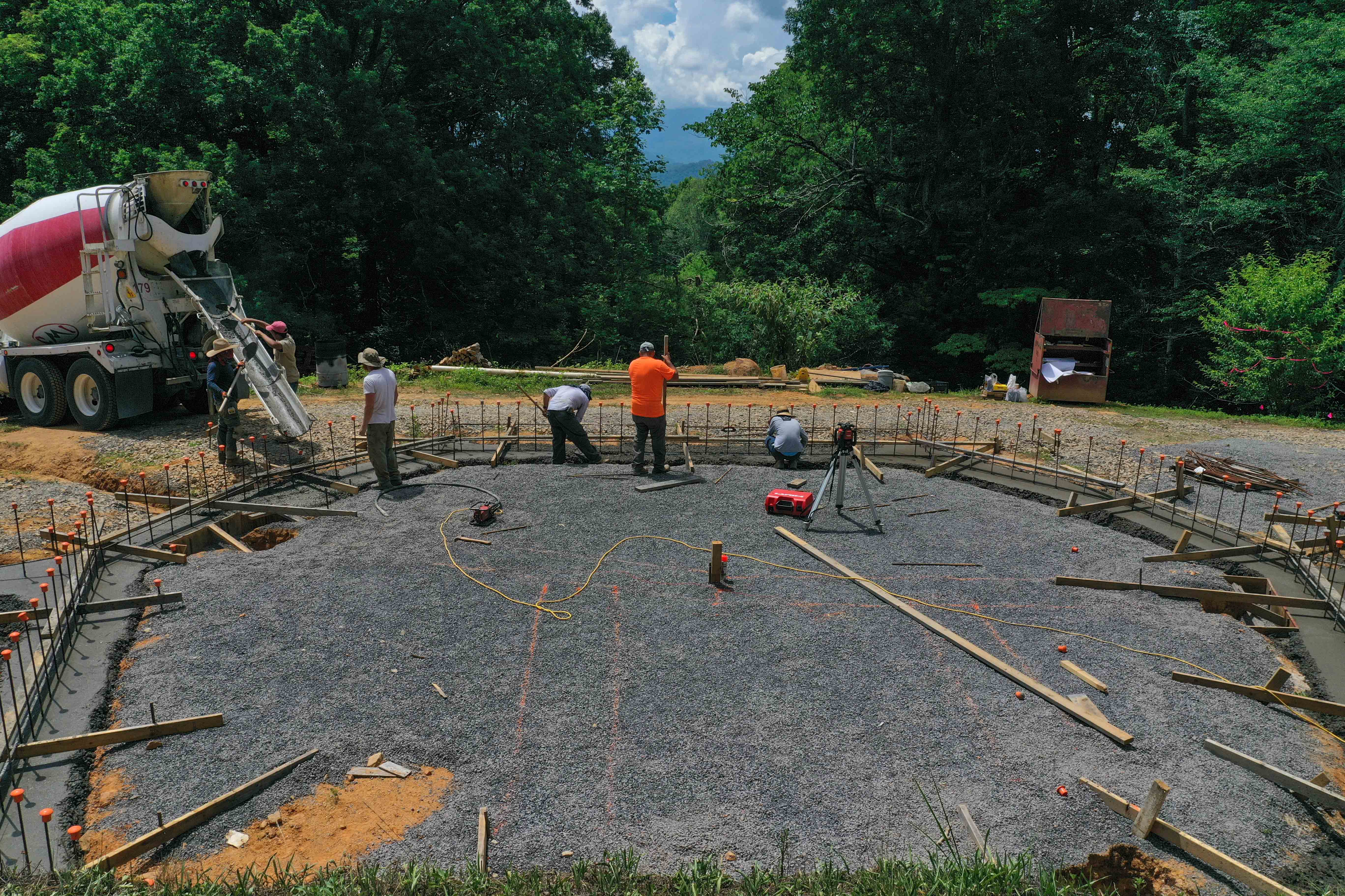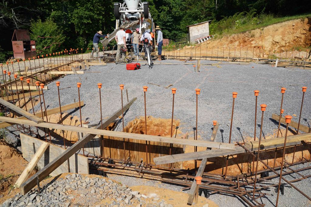 Like with the dome-kit delivery, the pour was rescheduled because of hurricane season. A few days after Sally blew through, we heard trucks coming up the gravel driveway at 6 a.m. Pour day had begun.