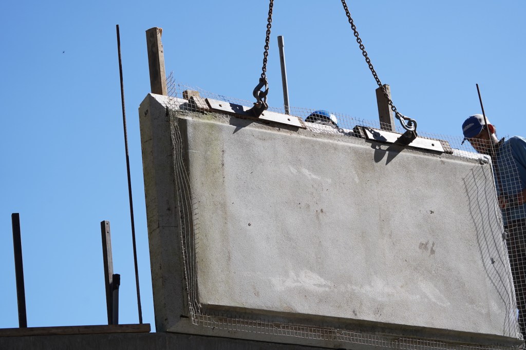 One unassuming morning after 3 years of waiting, the first dome panel went up, an event I happened to catch while walking the dogs. A huge moment for Chris and me but another basic learning moment for Doug, who was gauging the strength of the panel and how to best maneuver it, all while trying to squeeze details from the nebulous notebook about where, exactly, each panel should sit on top of the basement wall, or even how the panels were supposed to be turned.