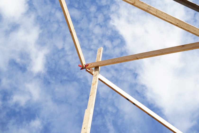As the concrete forms came down, one of the biggest questions looming was whether we’d need to build the first floor to brace the ribs to. The ribs need all sorts of bracing to support the dome triangles.