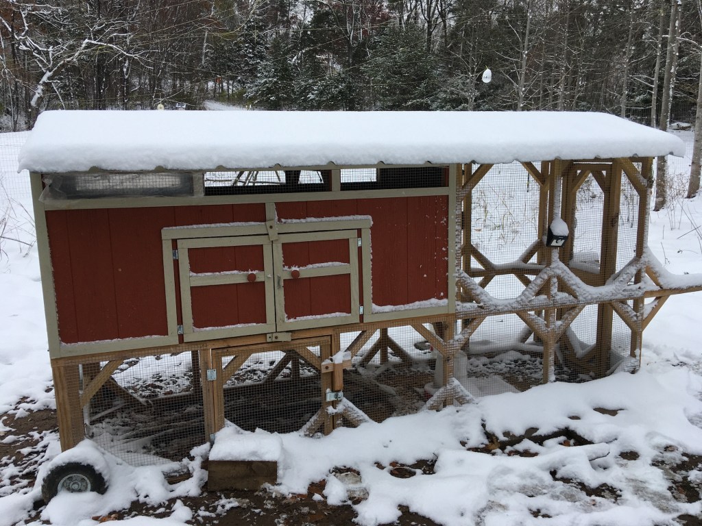 They had oatmeal and mash for dinner because the extra calories supposedly keep them warm overnight. Carrots and the others slept the night away as their coops were blanketed with snow.